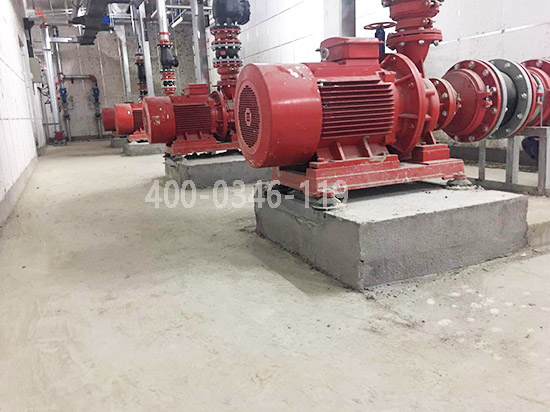 水泵机组安装在建筑地下室更底层;其出水管;进水管上应安装柔性接头减振;若安装在建筑物楼层楼板上时除了在进出水管上安装柔性接头外。并应在机组基础上设隔振台座。